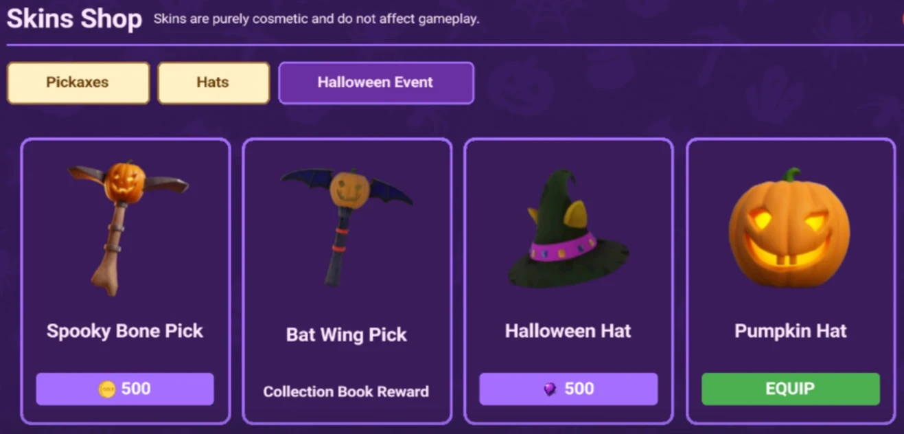 Low Poly Pickaxes, hats Halloween decorations. props, spiders, and environment I did for Miner Tycoon game, check it out on Meta Horizon. More updates coming for Xmas.